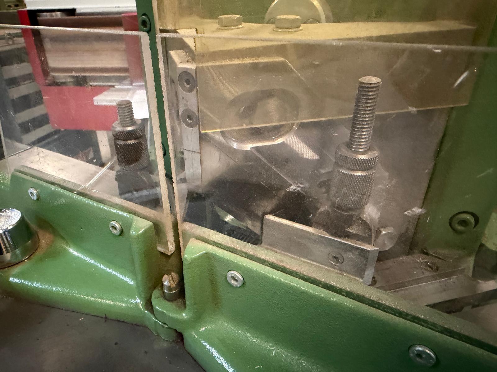 - Feststellschraube und Anschlag für den Schienenschnitt